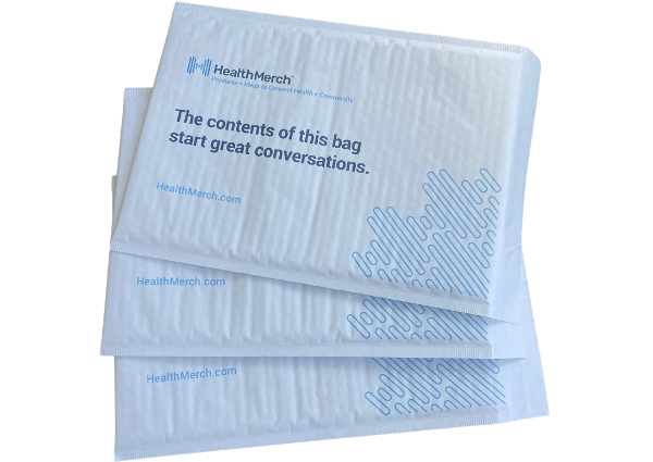 Using a Bubble Mailer or padded envelope is a great way to ship light-weight durable items and keep costs down. Custom bubble mailers are available through HealthMerch in 3 different sizes.